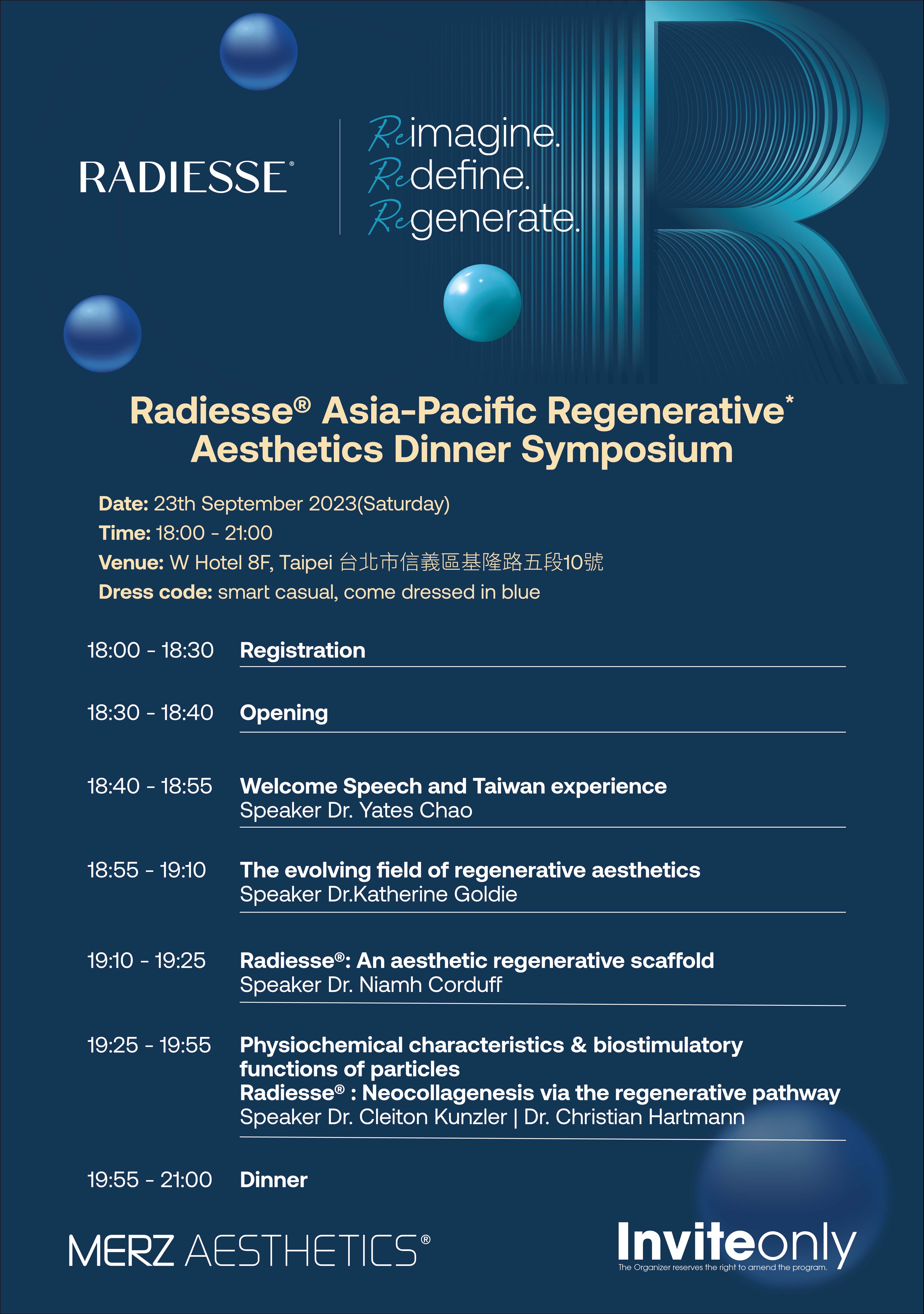 許院長受德國莫氏原廠Merz Aesthetics於台北W HOTEL 參加晶亮瓷亞太區再生美學晚宴(Radiesse Asia-Pacific Regenerative Aesthetics Dinner Symposium),當天與來自韓國、澳洲、泰國、印尼、馬來西亞等亞太地區的眾多醫師做深度交流。我們都了解目前的趨勢是膠原蛋白增生劑蓬勃發展的時代,因此對於目前市面上諸多的膠原蛋白增生劑的優勢、適合部位、深度以及使用技巧的深刻討論與瞭解都是非常必要的;許醫師同時也是莫氏原廠講師,針對個晶亮瓷再生美學希望大家來到花千樹坐深刻體驗,獲取更多最先進優雅且最符合國際潮流的一些新知以及治療方向,能夠”為美而來,帶美回去”!